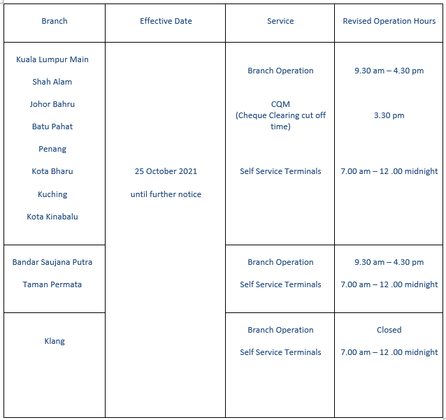 In line with government directive, KFH Malaysia has revised its services for the following: